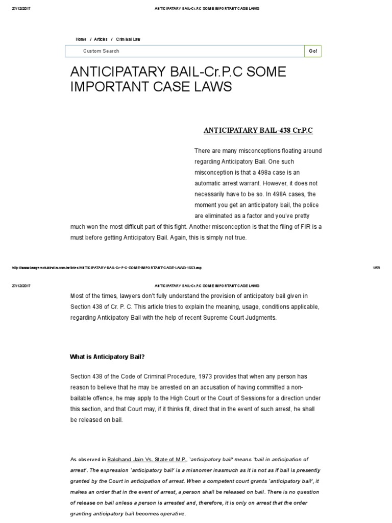 Related : Latest Judgment Of Supreme Court On Anticipatory Bail / The latest supreme court judgments, starting from 1950, with complete details of case..