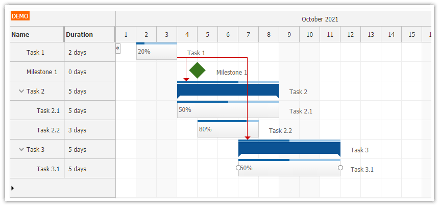 Setiap tugasan disenaraikan di satu sisi carta dan setiap tugasan mempunyai garis mendatar bertentangan.