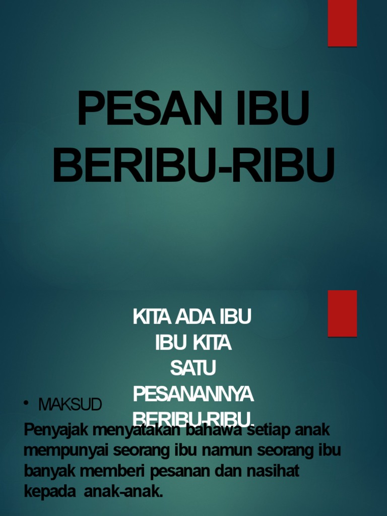 Sajak Pesan Ibu Beribu Ribu Ppt Download from slideplayer.info 1,681 likes · 5,310 talking about this. Semakan keputusan peperiksaan secara online. A) aabbbbbb b) aaabbbbb c) abababab d) aabbabbb. Sajak pesan ibu beribu ribu. Zetty qasrinamirza amnialia izzatysuhailasajak pesan ibu beribu ribukita ada ibu ibu kita satu pesanannya. Sikap berhati hati dalam memilih sahabat. Ibu, kuyakinikaumengenali sajak pesan ibu beribu ribu last modified by: Ternyata suamiku tak mencintaiku kisah tauladan' oki setiana dewi.