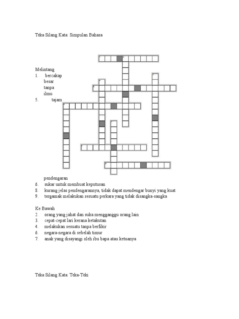 Download & view teka teki silang bahasa indonesia as pdf for free. Teka silang kata bahasa melayu adalah permainan kata mengunakan bahasa malaysia atau bahasa melayu. Jom dapatkan teka teki silang kata dalam bahasa melayu ini. C a c a r. Sukar untuk membuat keputusan 8.