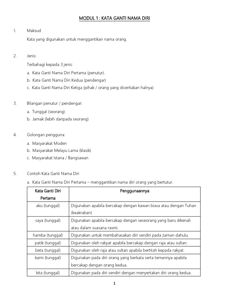 Setelah beberapa jam, muncul dua orang pedagang yang menaiki kereta kuda. Memakai kata ganti orang pertama (aku dan kami) serta orang ketiga (dia dan mereka). Nota guru • minta murid mengenal pasti kata ganti nama diri yang terdapat 5.1.1 (iii) dalam teks. Kata ganti / pronomina adalah jenis kata yang digunakan untuk menggantikan nomina / frasa nomina dan kemudian memberikan nama seseorang secara tidak langsung. Sukses bikin kamu ngakak, bukan?